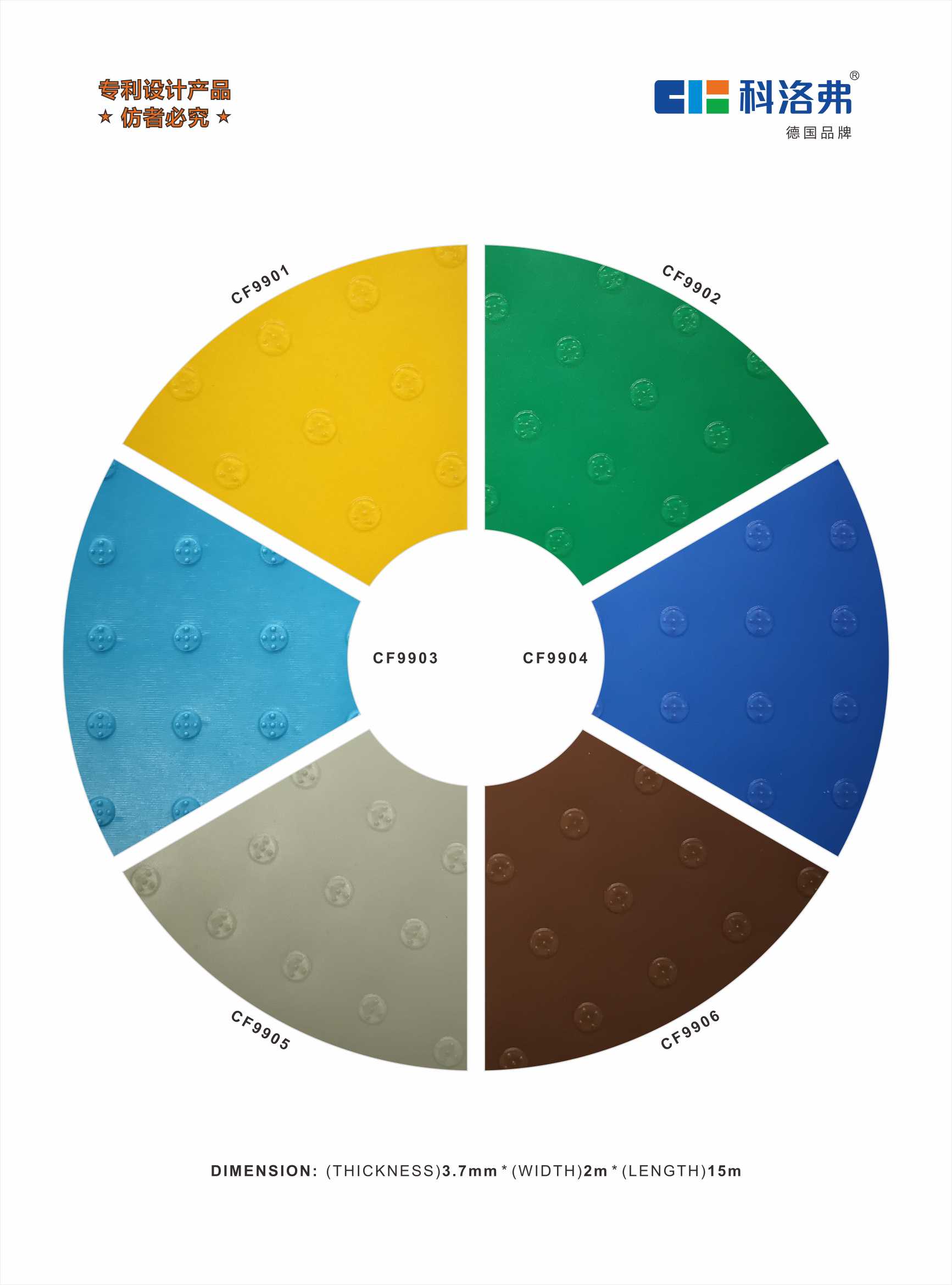 產品信息厚度:3.7mm 耐磨層:3.7mm 卷寬:2m 卷長: 15m