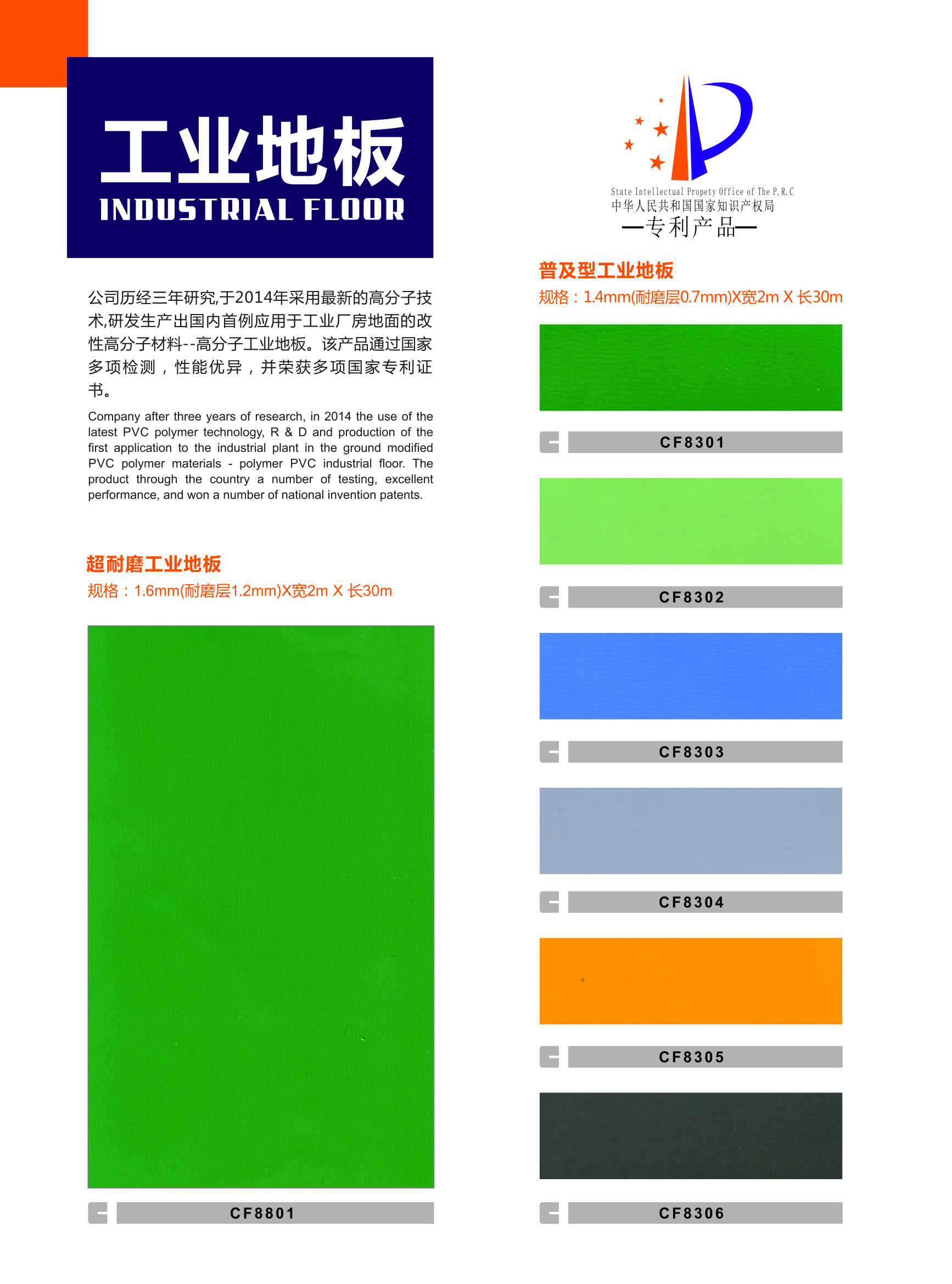 多家知名企業指定使用的【高分子地板】生產廠家——【科洛弗高分子工業地板】一種新型高強度擠壓成型工業地板,是湖南峰暢建材有限公司集合公司研究人員經過三年精心研發出的成果,為國內專業專注于工業廠房地面材料開發的產品之一。